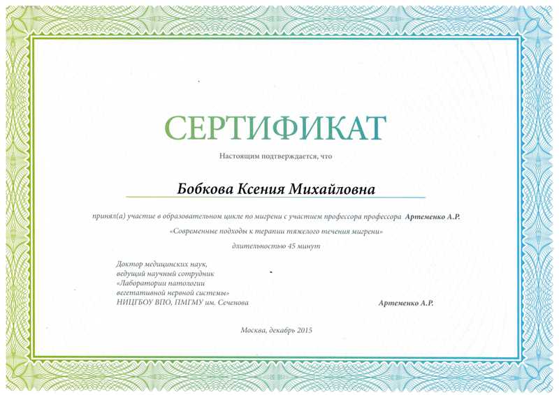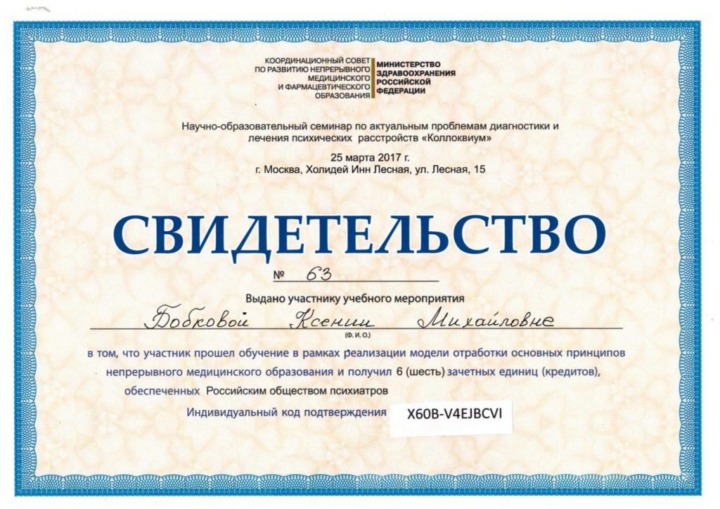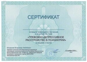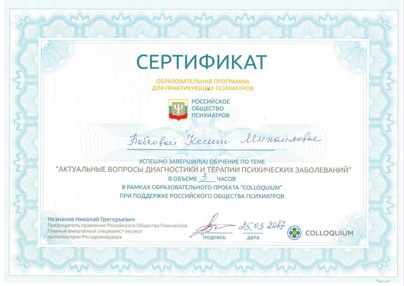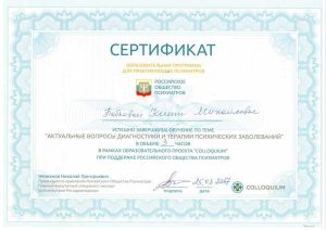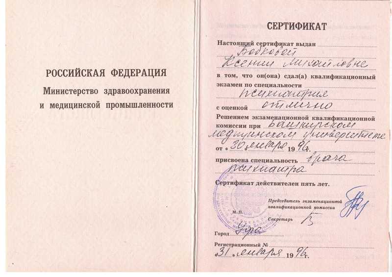 Психиатрия Сертификат специалиста № 15 31.01.1996