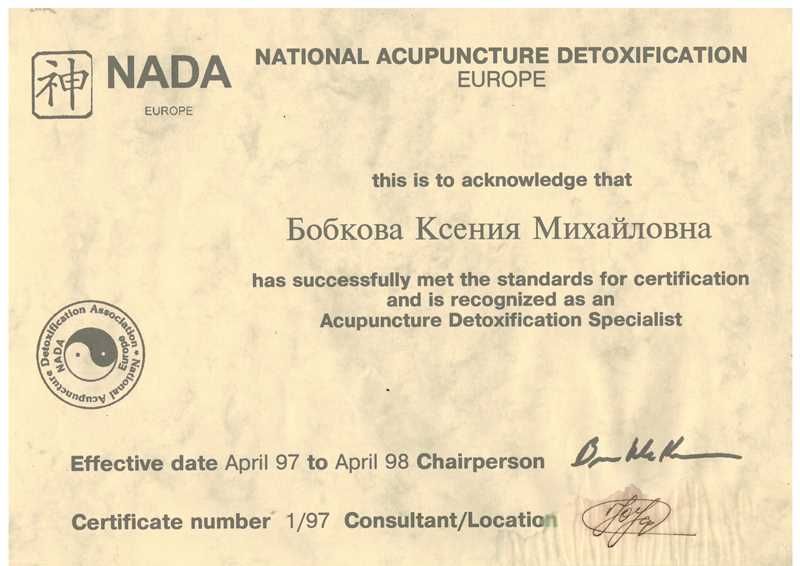 Acuhuncture Detoxification Specialist. National Acupuncture Detoxification. EUROPE